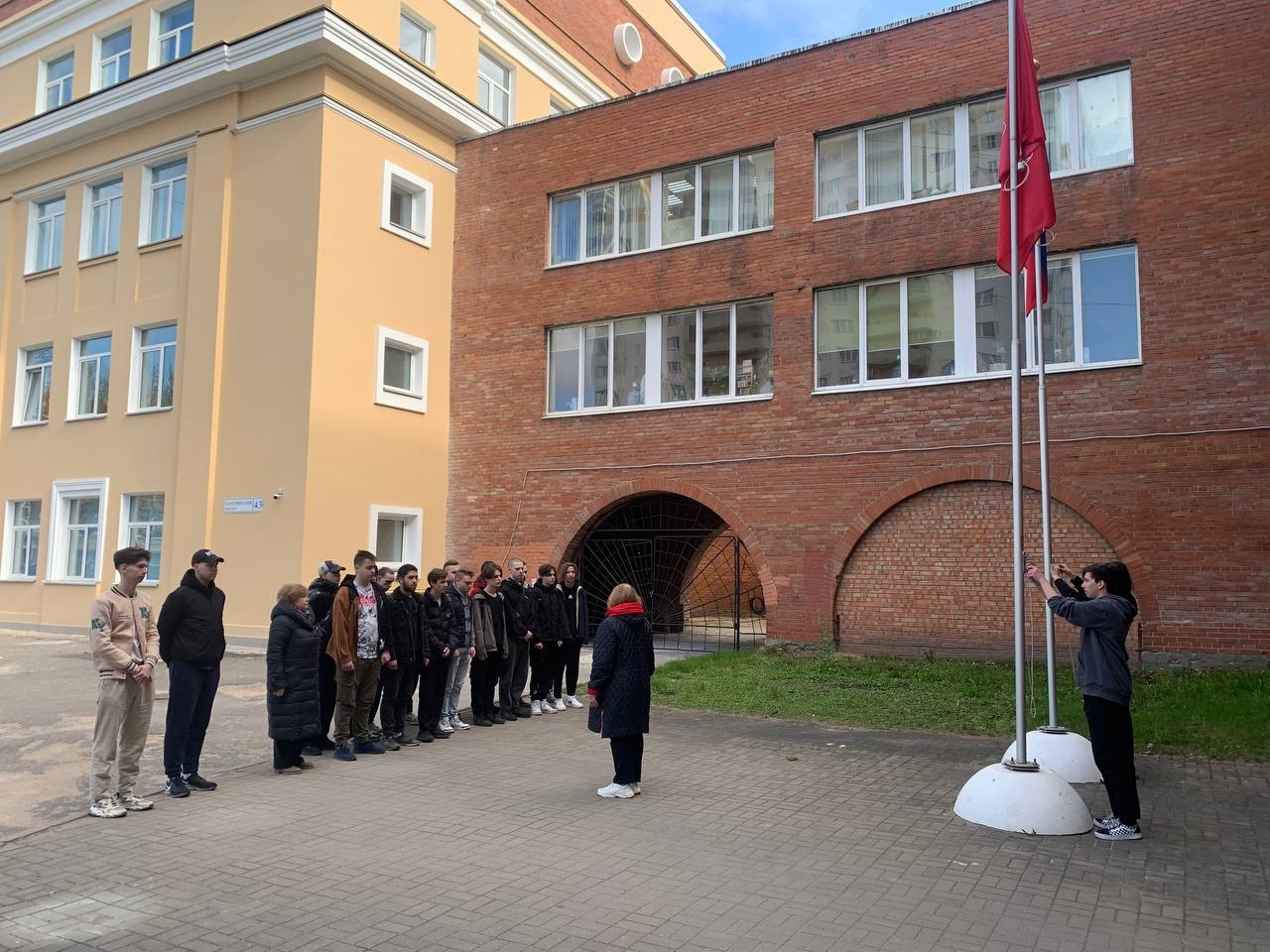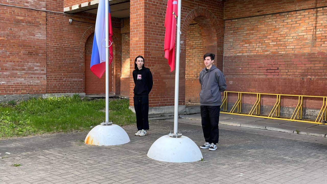 Флаг поднимали Анисимов Григорий и Суховей Богдан из группы ЭРМ 37/38 (мастер п/о Прусс Г.С.) под руководством Губанова А.Е.