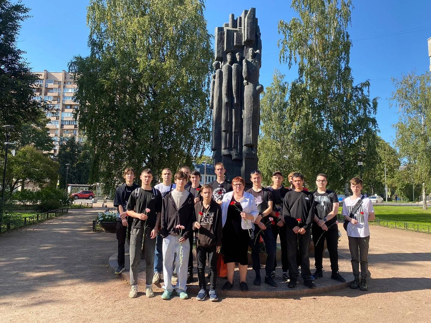 Группы ИС 67/68 и ИС 69/70 (мастер п/о Асланова В.В.) возложили цветы к памятнику блокадникам.